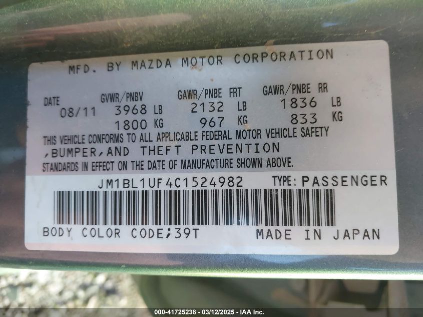 Color GrayCylinders 4Drive Front wheel driveVIN JM1BL1UF4C1******State Run & Drive VerifiedDamage Front and back AutoRIA