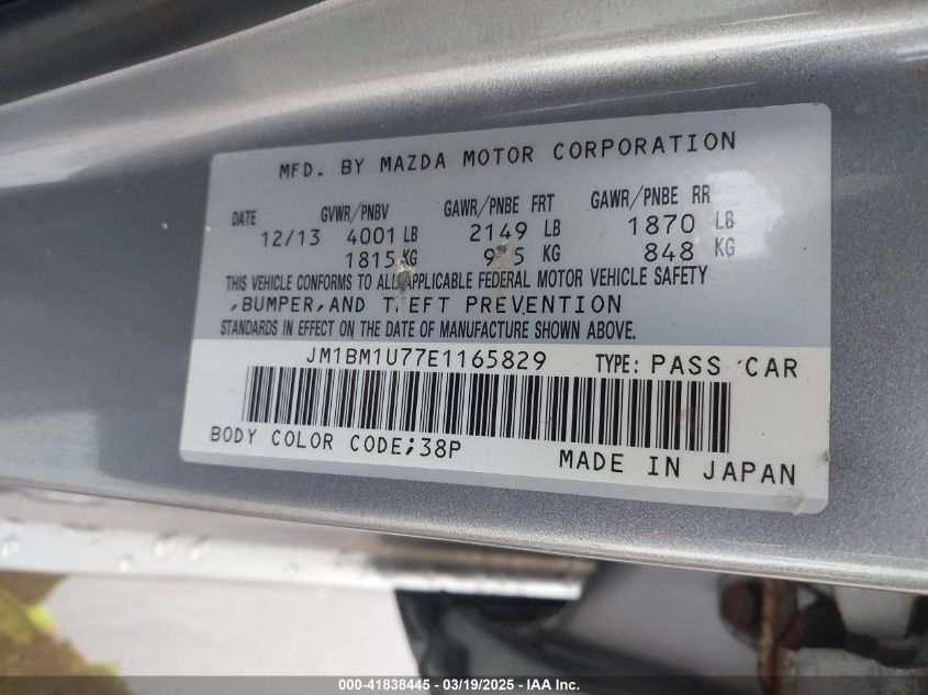 Color SilverCylinders 4Drive Front wheel driveVIN JM1BM1U77E1******State Run & Drive VerifiedDamage Right side AutoRIA