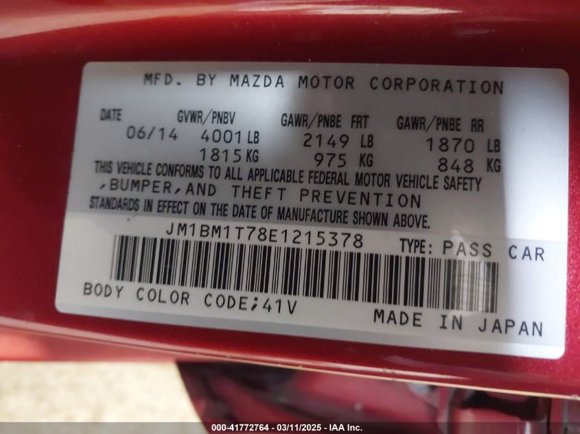 Color RedCylinders 4Drive Front wheel driveVIN JM1BM1T78E1******State Run & Drive VerifiedDamage Rear right AutoRIA