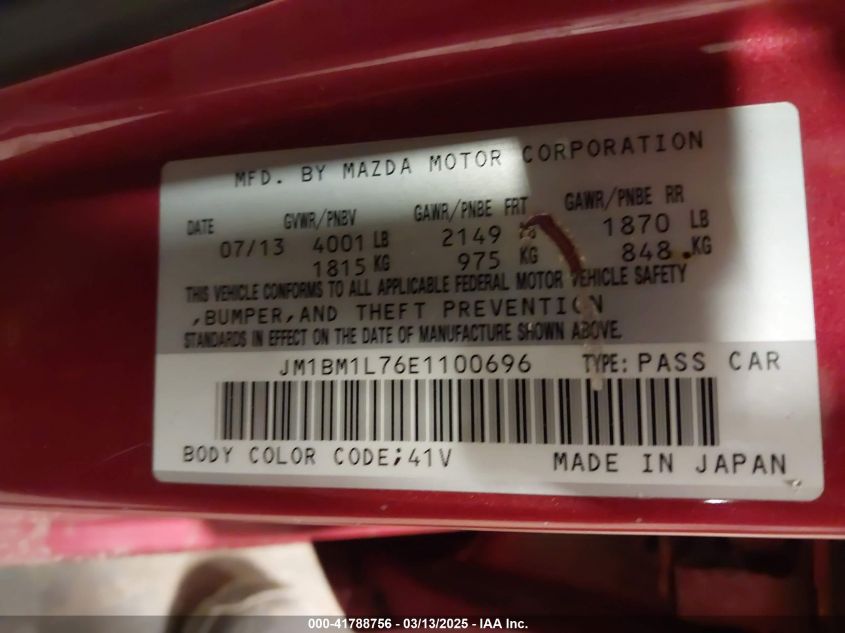 Color RedCylinders 4Drive Front wheel driveVIN JM1BM1L76E1******State Run & Drive VerifiedDamage Front or back AutoRIA