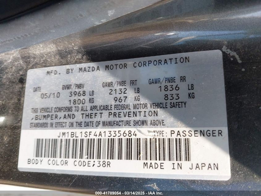 Color GrayCylinders 4Drive Front wheel driveVIN JM1BL1SF4A1******State Run & Drive VerifiedDamage Front or backAuction date 2025-03-26 AutoRIA