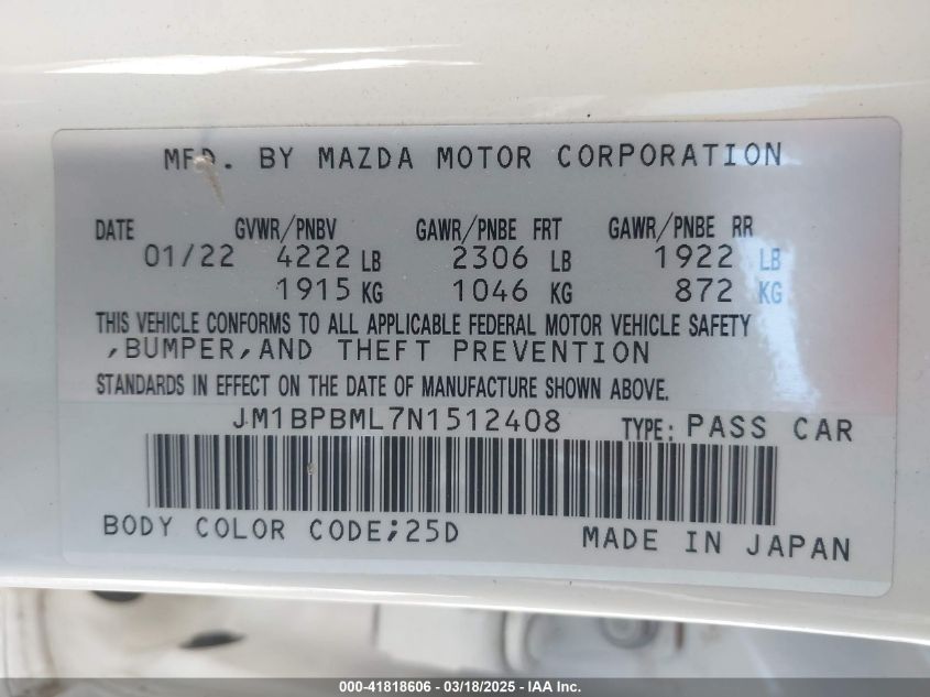 2022 MAZDA 3 2022 Gasoline, 2.5, Full drive, VIN - JM1BPBML7N1****** from the USA