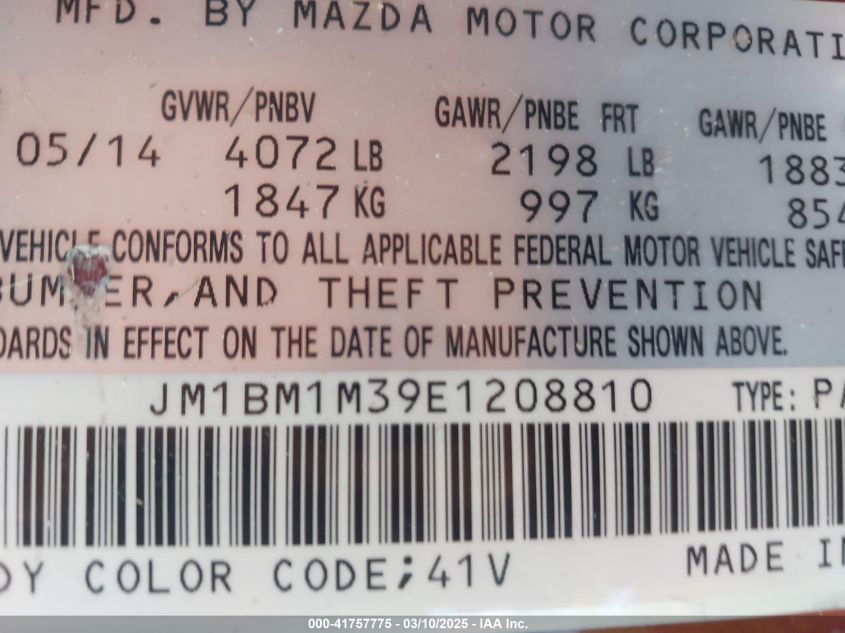 Color RedCylinders 4Drive Front wheel driveVIN JM1BM1M39E1******State Run & Drive VerifiedDamage Back AutoRIA