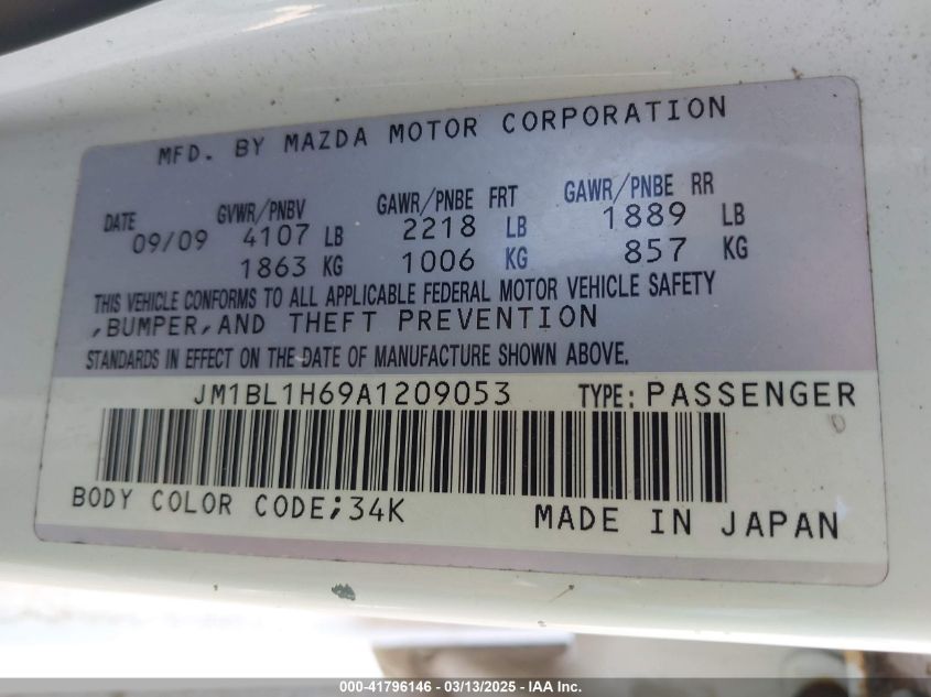 Color WhiteCylinders 4Drive Front wheel driveVIN JM1BL1H69A1******State Run & Drive VerifiedDamage Right side AutoRIA