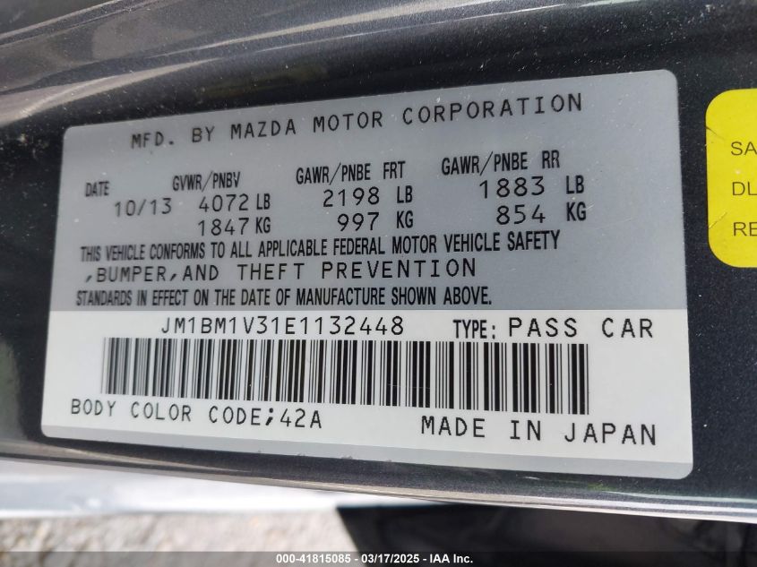 Color GrayCylinders 4Drive Front wheel driveVIN JM1BM1V31E1******State Run & Drive VerifiedDamage Front or back AutoRIA