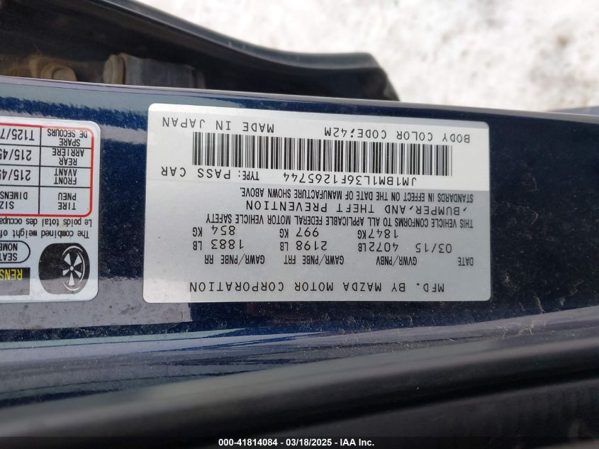 Color BlueCylinders 4Drive Front wheel driveVIN JM1BM1L36F1******State Run & Drive VerifiedDamage Front or back AutoRIA