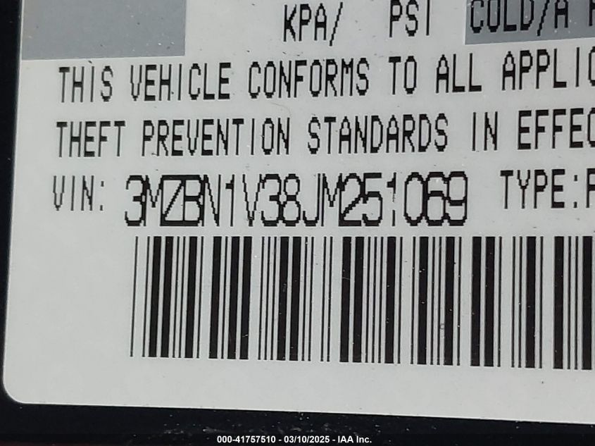 Color BlackCylinders 4Drive Front wheel driveVIN 3MZBN1V38JM******State Run & Drive VerifiedDamage Front right AutoRIA
