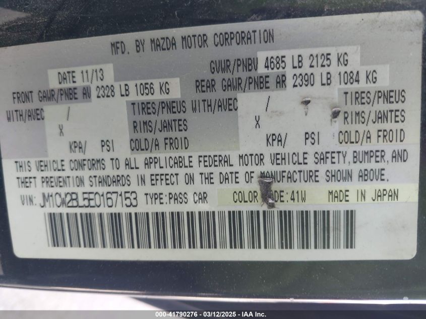 Color BlackCylinders 4Drive Front wheel driveVIN JM1CW2BL5E0******State Run & Drive VerifiedDamage Back AutoRIA