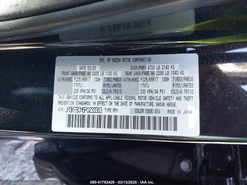 Color BlackCylinders 4Drive Full driveVIN JM3KFBCM6P0******State Run & Drive VerifiedDamage Front or back AutoRIA