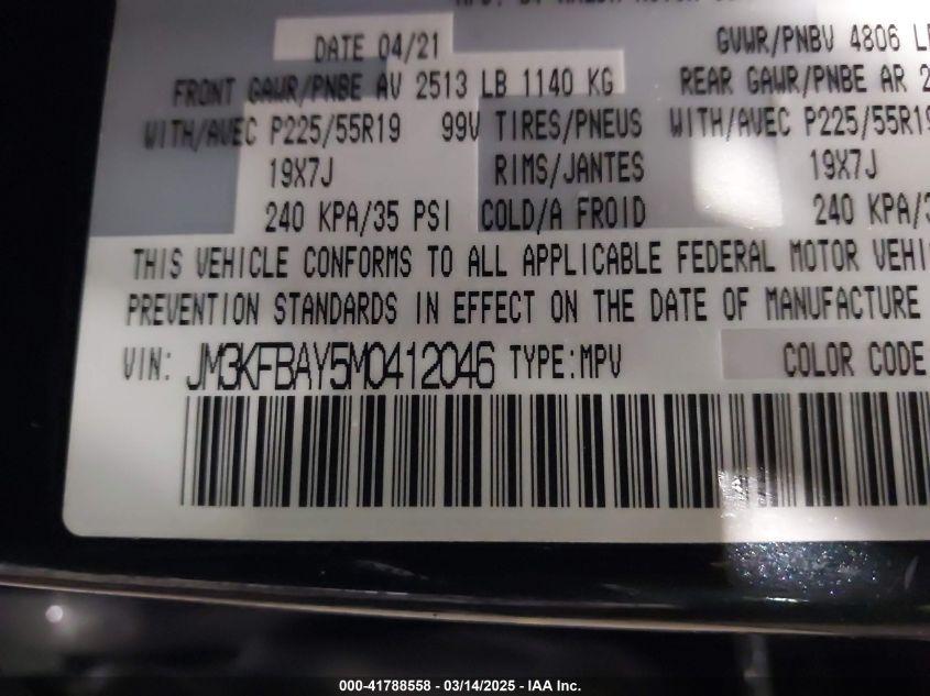 Color GrayCylinders 4Drive Full driveVIN JM3KFBAY5M0******State Run & Drive VerifiedDamage Vandalism AutoRIA