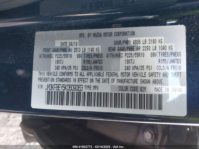 Color BlueCylinders 4Drive Full driveVIN JM3KFBEY5K0******State Run & Drive VerifiedDamage Front or back AutoRIA
