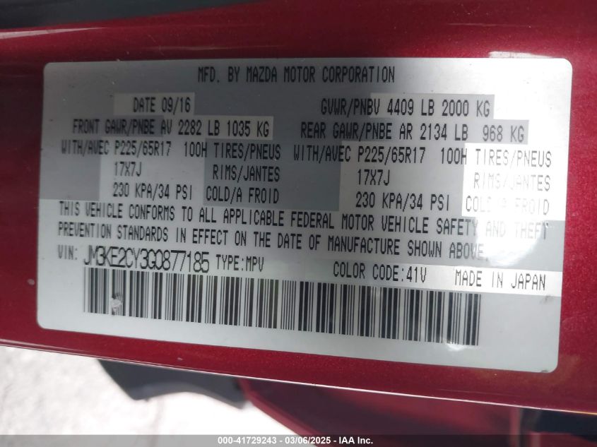 2016 MAZDA CX-5 2016 Gasoline, 2.5, Front wheel drive, VIN - JM3KE2CY3G0****** from the USA