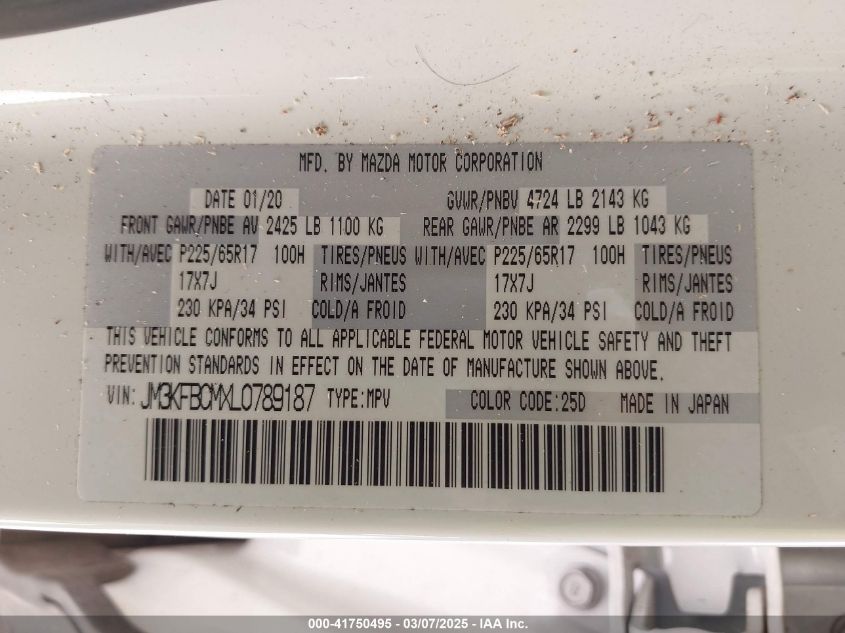 2020 MAZDA CX-5 2020 Gasoline, 2.5, Full drive, VIN - JM3KFBCMXL0****** from the USA