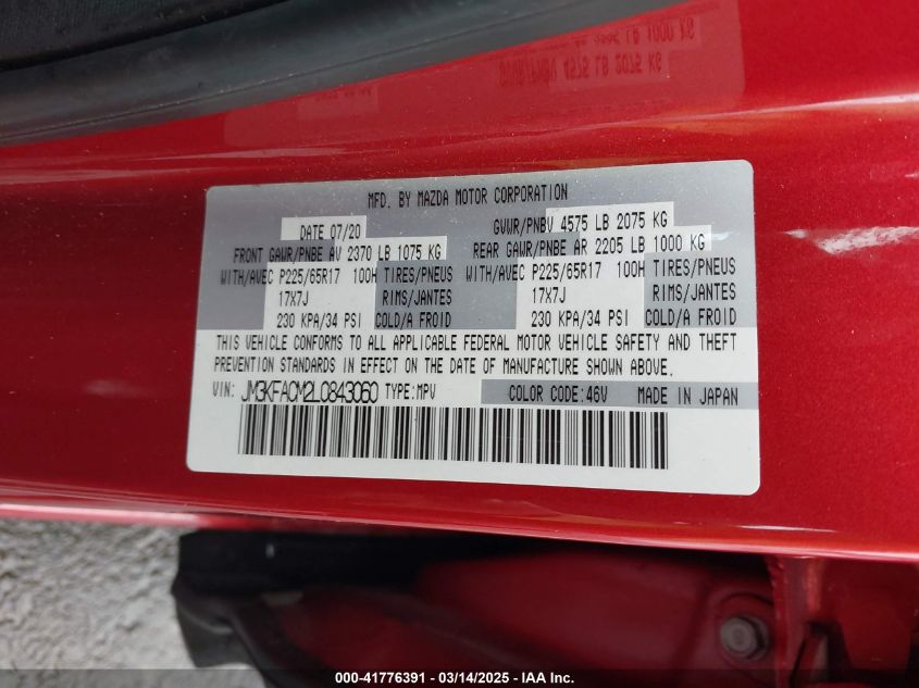 2020 MAZDA CX-5 2020 Gasoline, 2.5, Front wheel drive, VIN - JM3KFACM2L0****** from the USA