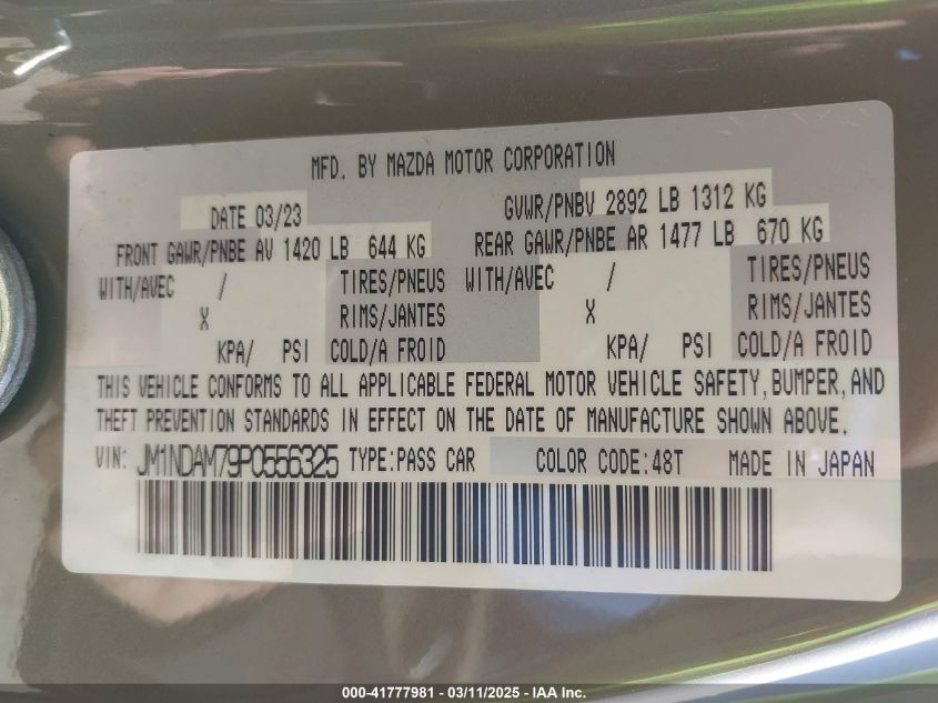 2023 MAZDA MX-5 2023 Gasoline, 2.0, Rear wheel drive, VIN - JM1NDAM79P0****** from the USA