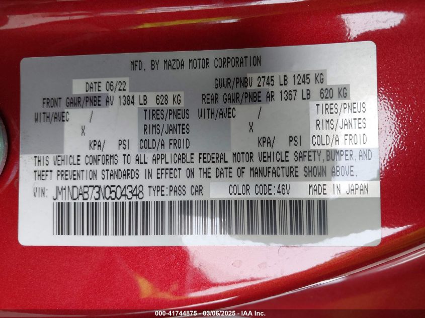 2022 MAZDA MX-5 2022 Gasoline, 2.0, Rear wheel drive, VIN - JM1NDAB73N0****** from the USA