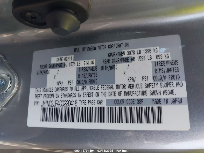 Color SilverCylinders 4Drive Rear wheel driveVIN JM1NC2JF4C0******State Run & Drive VerifiedDamage Front or back AutoRIA