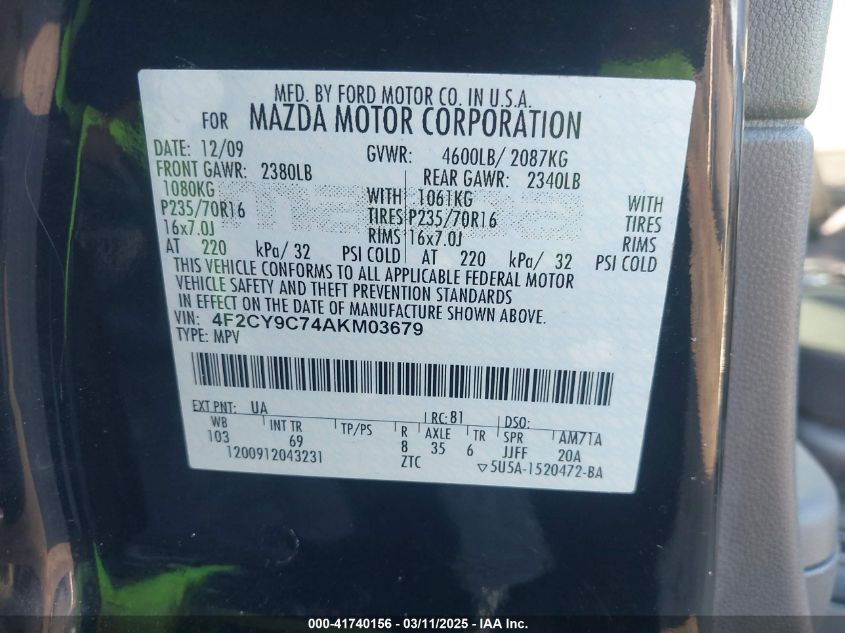 2010 MAZDA TRIBUTE 2010 Gasoline, 2.5, Full drive, VIN - 4F2CY9C74AK****** from the USA