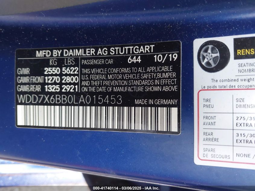 2020 MERCEDES-BENZ AMG GT 2020 Gasoline, 3.0, Full drive, VIN - WDD7X6BB0LA****** from the USA
