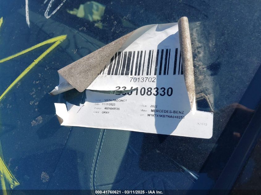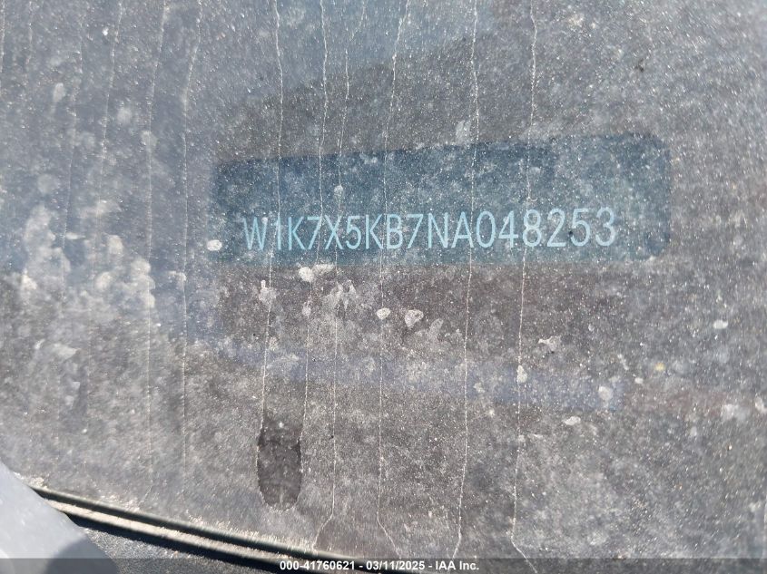 Color GrayCylinders 6Drive Full driveVIN W1K7X5KB7NA******State Run & Drive VerifiedDamage It is unknownAuction date 2025-03-25