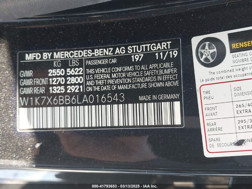 Color BlackCylinders 6Drive Full driveVIN W1K7X6BB6LA******State Run & Drive VerifiedDamage Front or back