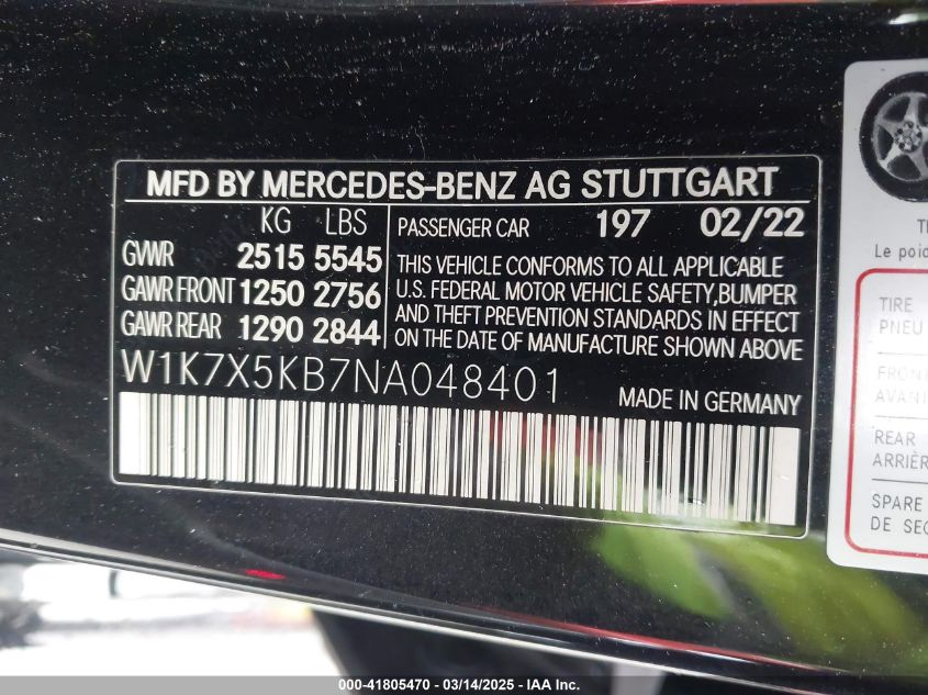 Color BlackCylinders 6Drive Full driveVIN W1K7X5KB7NA******State Run & Drive VerifiedDamage Front and back