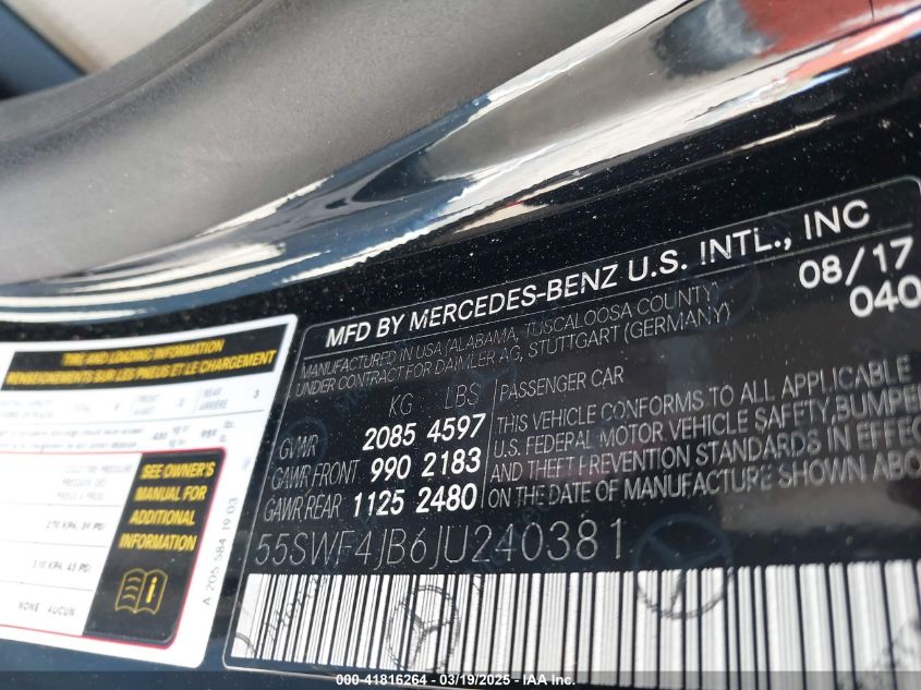 2018 MERCEDES-BENZ C-CLASS 2018 Gasoline, 2.0, Rear wheel drive, VIN - 55SWF4JB6JU****** from the USA