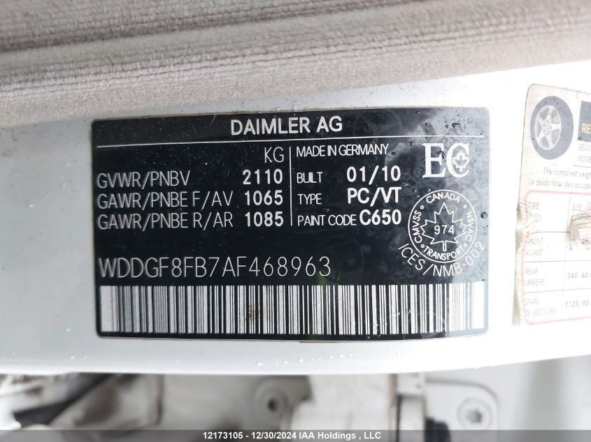 Color WhiteCylinders 6Drive UnknownVIN WDDGF8FB7AF******State Run & Drive VerifiedDamage FrontAuction date 2025-03-20 AutoRIA