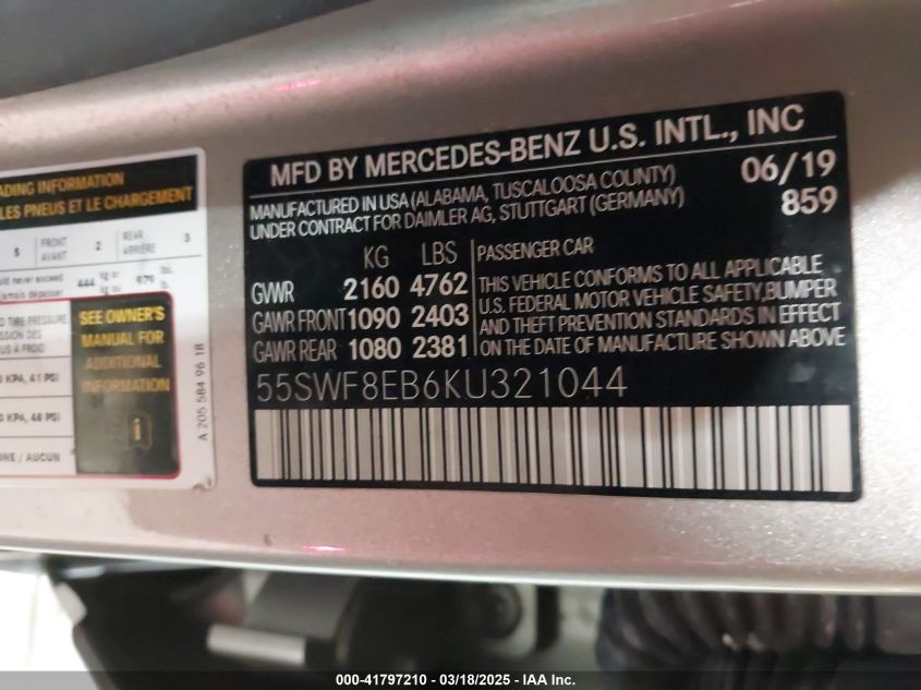 2019 MERCEDES-BENZ C-CLASS 2019 Gasoline, 2.0, Full drive, VIN - 55SWF8EB6KU****** from the USA