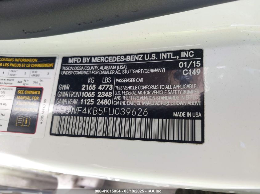 2015 MERCEDES-BENZ C-CLASS 2015 Gasoline, 2.0, Full drive, VIN - 55SWF4KB5FU****** from the USA