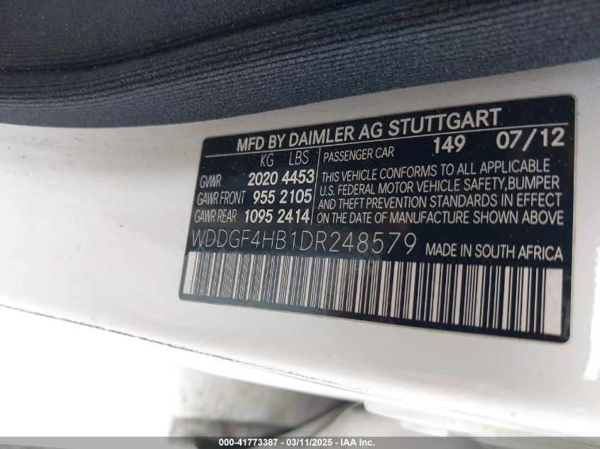 Color WhiteCylinders 4Drive Rear wheel driveVIN WDDGF4HB1DR******State Run & Drive VerifiedDamage Front or backAuction date 2025-03-21 AutoRIA