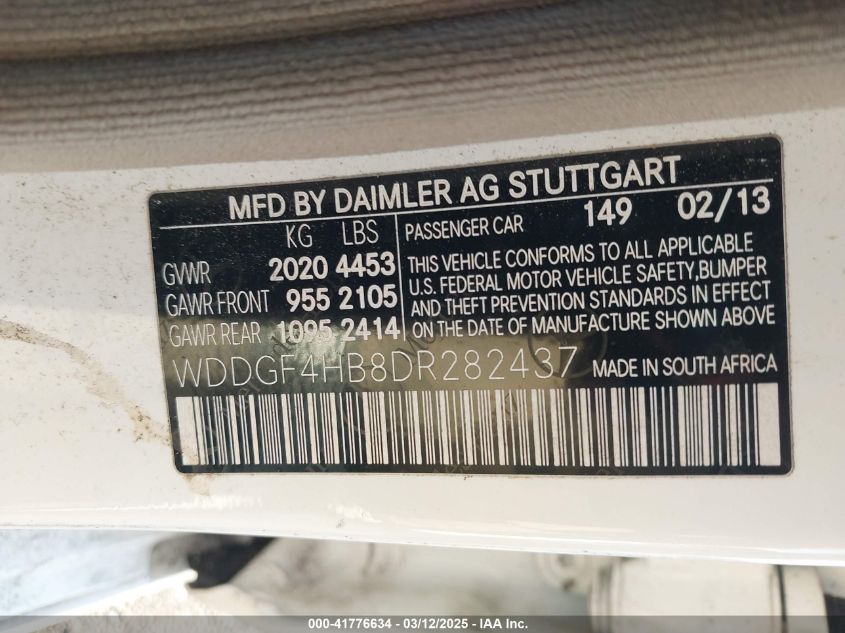 Color WhiteCylinders 4Drive Rear wheel driveVIN WDDGF4HB8DR******State Run & Drive VerifiedDamage Front or backAuction date 2025-03-20 AutoRIA