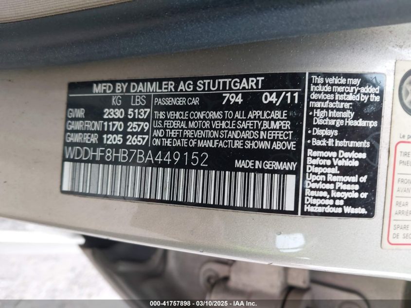 2011 MERCEDES-BENZ E-CLASS 2011 Gasoline, 3.5, Full drive, VIN - WDDHF8HB7BA****** from the USA