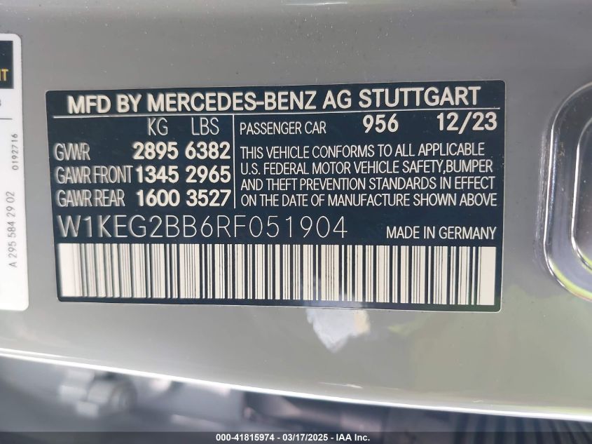 2024 MERCEDES-BENZ EQE 2024 Electric, U, Rear wheel drive, VIN - W1KEG2BB6RF****** from the USA