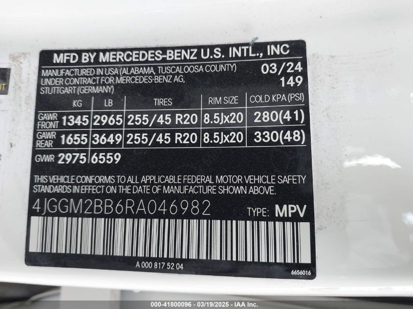 2024 MERCEDES-BENZ EQE 2024 Electric, U, Unknown, VIN - 4JGGM2BB6RA****** from the USA