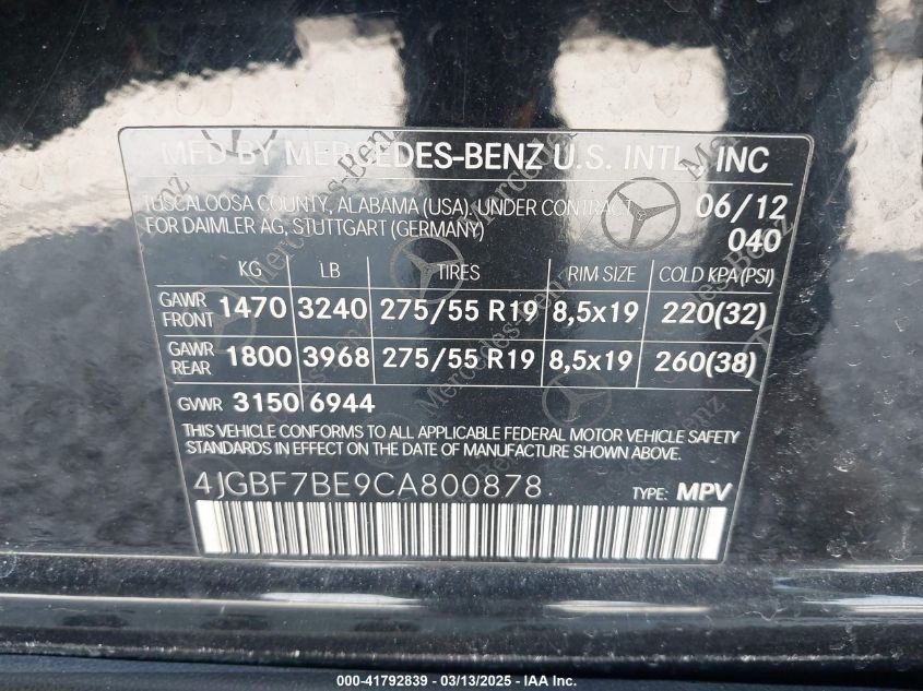 Color BlackCylinders 8Drive Full driveVIN 4JGBF7BE9CA******State Run & Drive VerifiedDamage Front or backAuction date 2025-03-25 AutoRIA