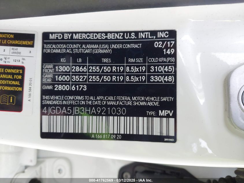 2017 MERCEDES-BENZ GLE-CLASS 2017 Gasoline, 3.5, Unknown, VIN - 4JGDA5JB3HA****** from the USA