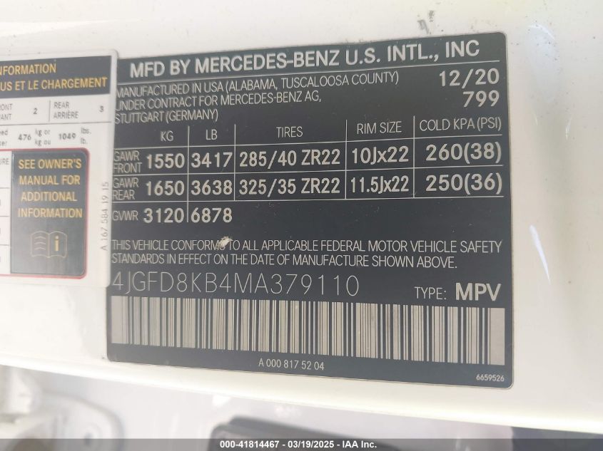2021 MERCEDES-BENZ GLE-CLASS 2021 Gasoline, 4.0, Full drive, VIN - 4JGFD8KB4MA****** from the USA