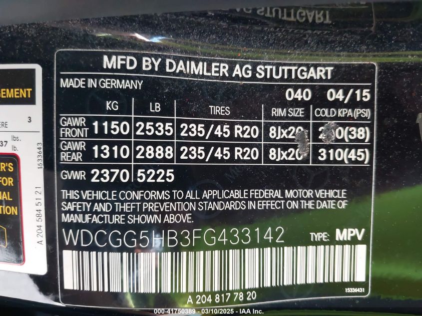 2015 MERCEDES-BENZ GLK-CLASS 2015 Gasoline, 3.5, Unknown, VIN - WDCGG5HB3FG****** from the USA
