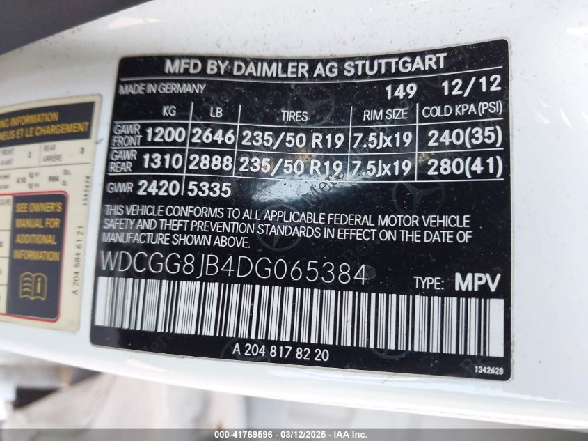 2013 MERCEDES-BENZ GLK-CLASS 2013 Gasoline, 3.5, Full drive, VIN - WDCGG8JB4DG****** from the USA
