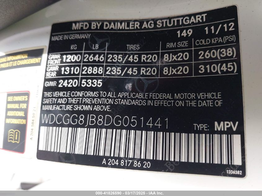 Color WhiteCylinders 6Drive Full driveVIN WDCGG8JB8DG******State Run & Drive VerifiedDamage InsignificantAuction date 2025-03-20 AutoRIA