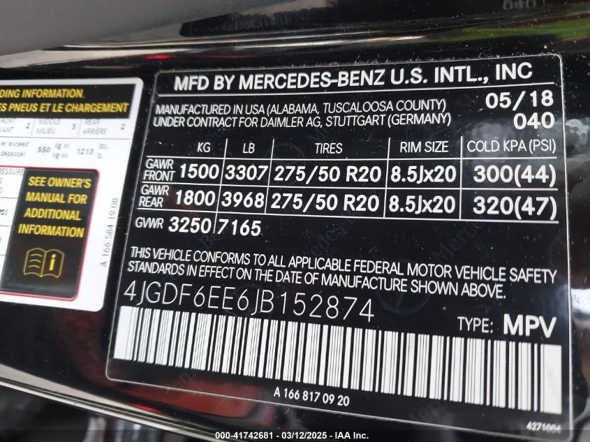 2018 MERCEDES-BENZ GLS-CLASS 2018 Gasoline, 3.0, Full drive, VIN - 4JGDF6EE6JB****** from the USA