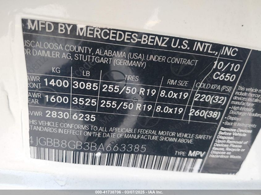 Color WhiteCylinders 6Drive Full driveVIN 4JGBB8GB3BA******State Run & Drive VerifiedDamage Front or backAuction date 2025-03-20 AutoRIA