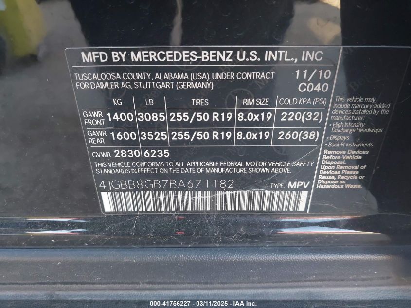 2011 MERCEDES-BENZ M-CLASS 2011 Gasoline, 3.5, Full drive, VIN - 4JGBB8GB7BA****** from the USA
