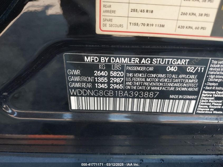 Color BlackCylinders 8Drive Full driveVIN WDDNG8GB1BA******State Run & Drive VerifiedDamage Front rightAuction date 2025-03-28 AutoRIA