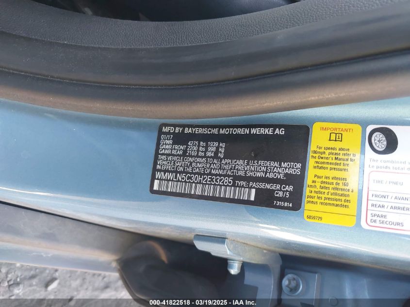 Color BlueCylinders 3Drive Front wheel driveVIN WMWLN5C30H2******State Run & Drive VerifiedDamage Front or back AutoRIA
