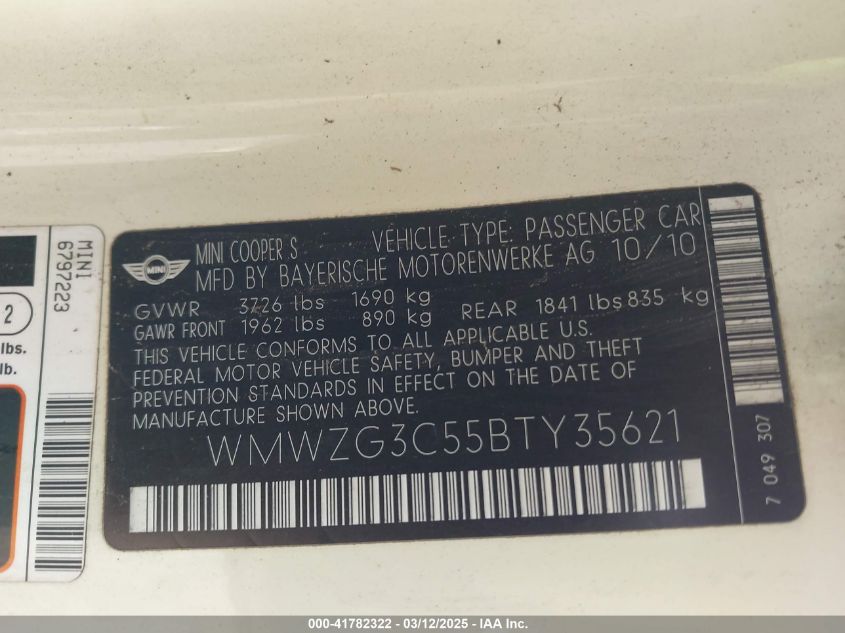 2011 MINI CLUBMAN 2011 Gasoline, 1.6, Front wheel drive, VIN - WMWZG3C55BT****** from the USA