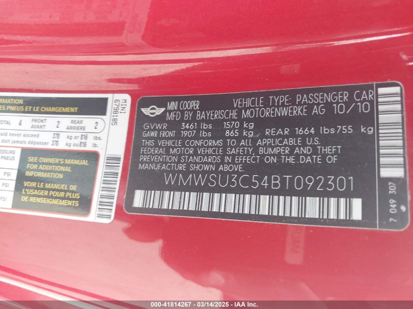 Color RedCylinders 4Drive Front wheel driveVIN WMWSU3C54BT******State Run & Drive VerifiedDamage Front or backAuction date 2025-03-21