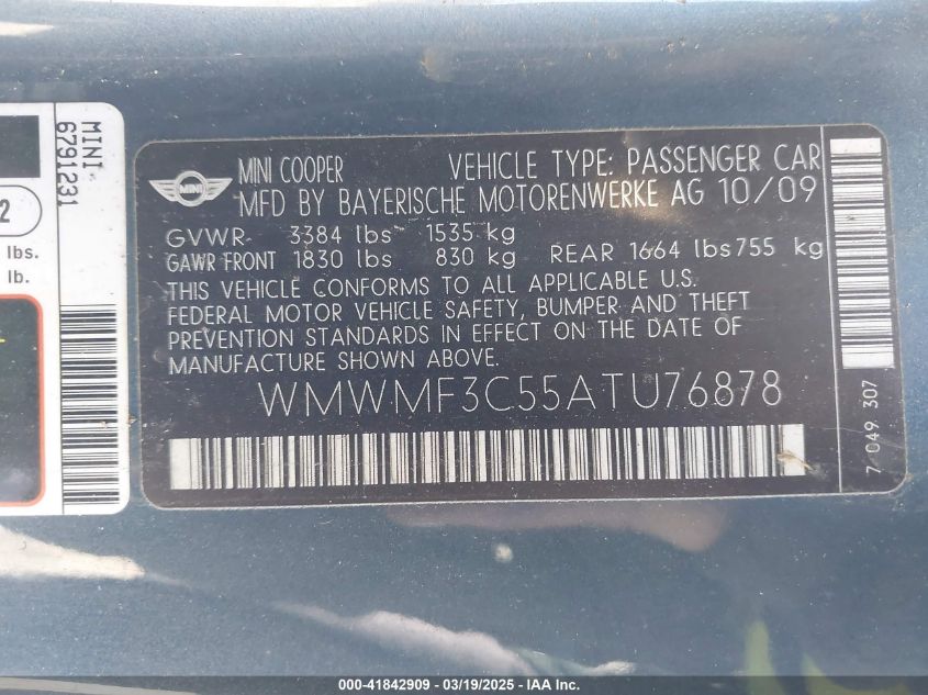 2010 MINI COOPER 2010 Gasoline, 1.6, Front wheel drive, VIN - WMWMF3C55AT****** from the USA