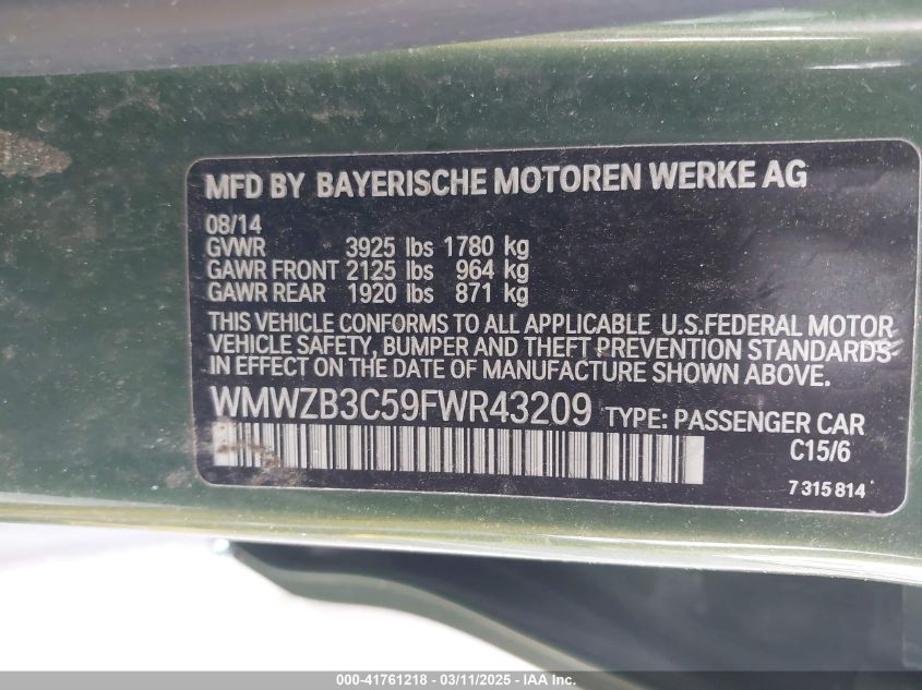 Color GreenCylinders 4Drive Front wheel driveVIN WMWZB3C59FW******State Run & Drive VerifiedDamage All over the car AutoRIA